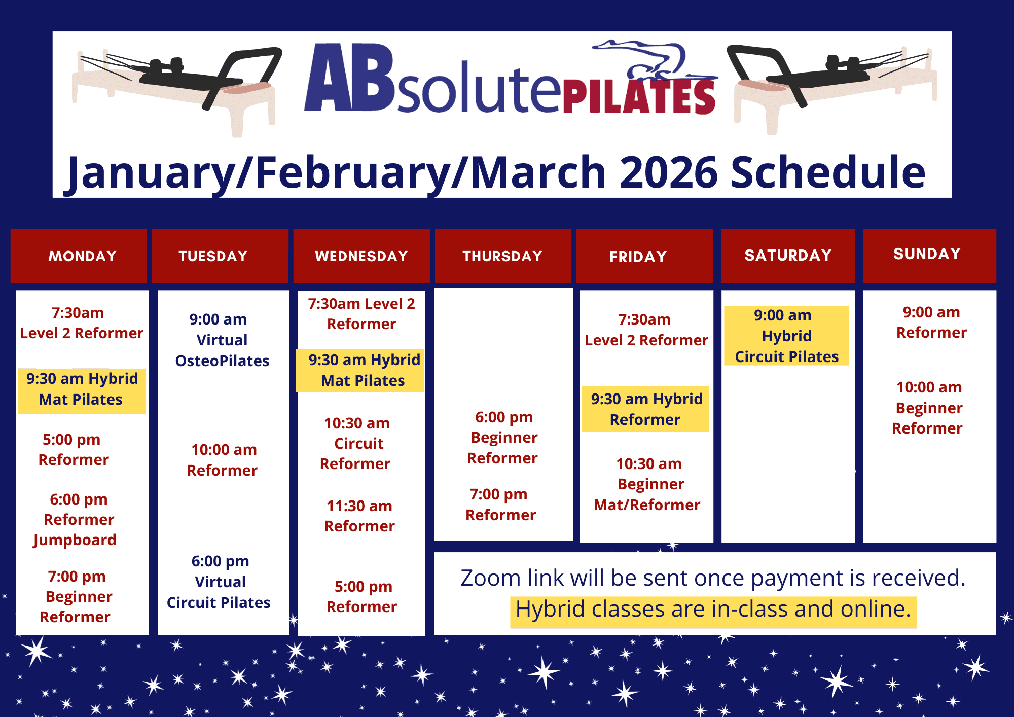 Pilates Schedule